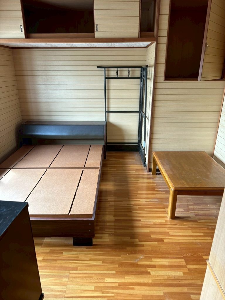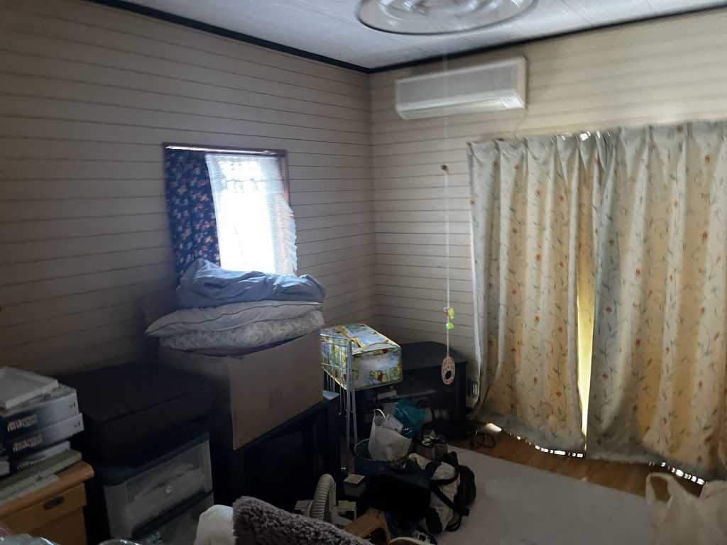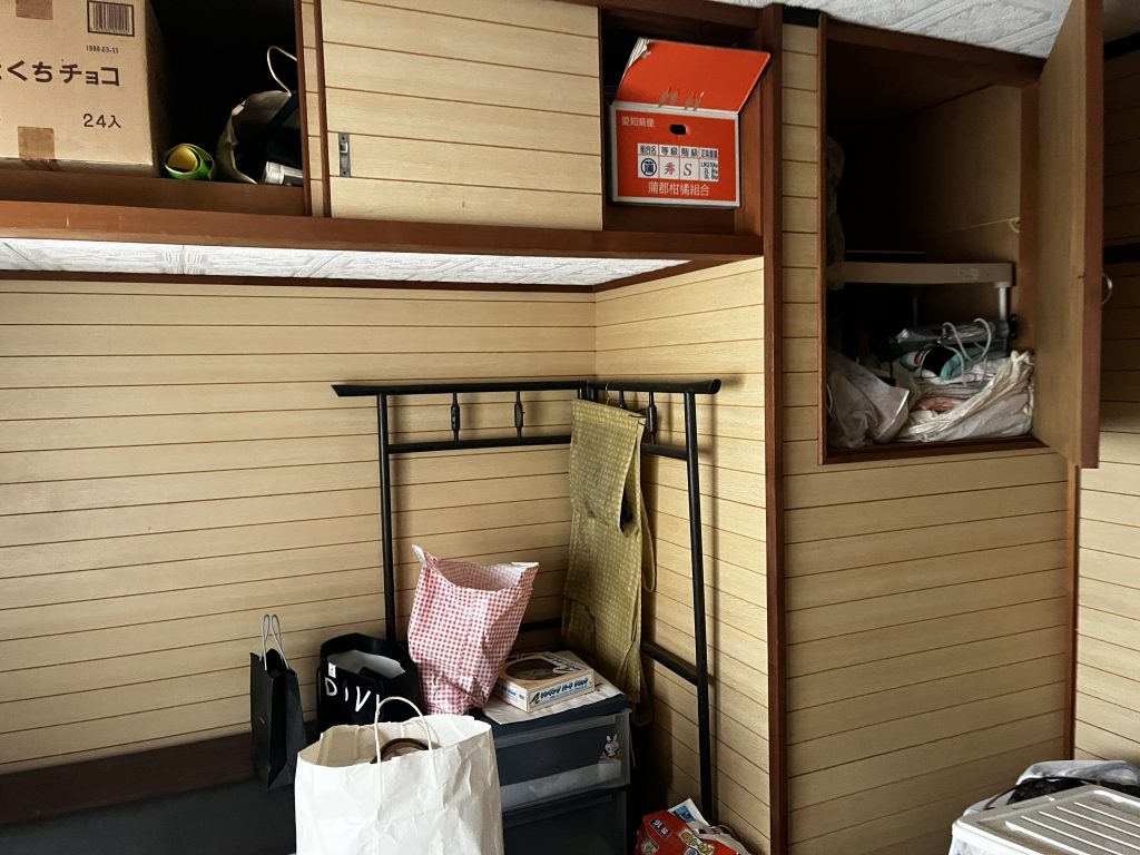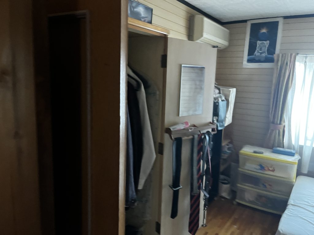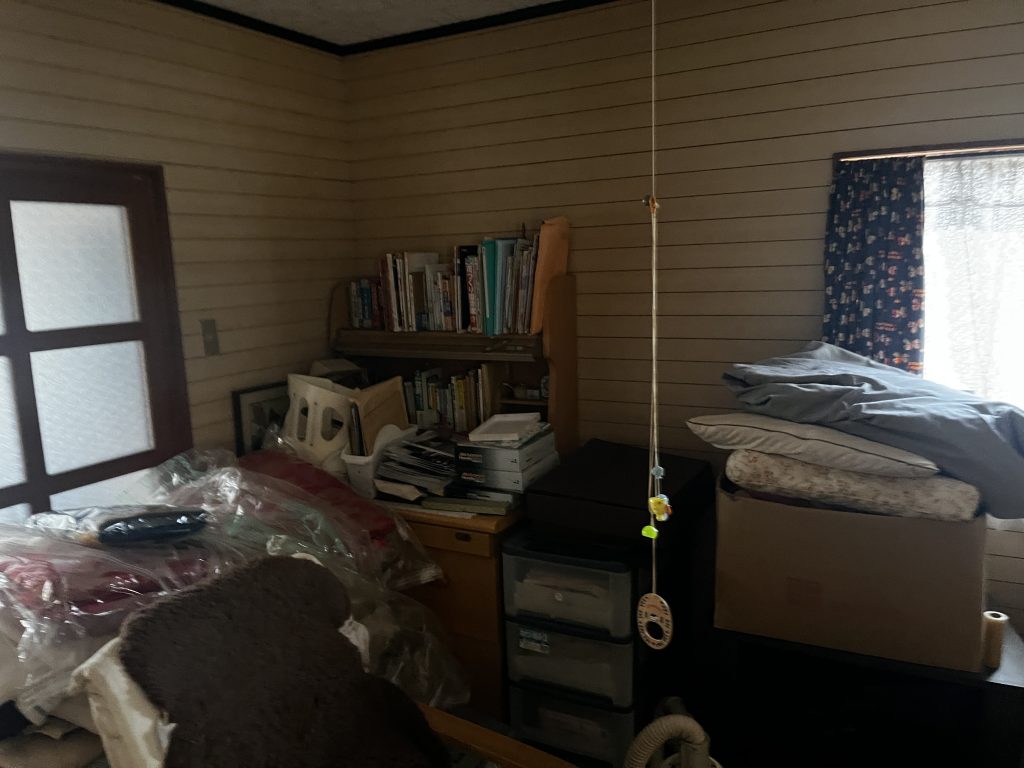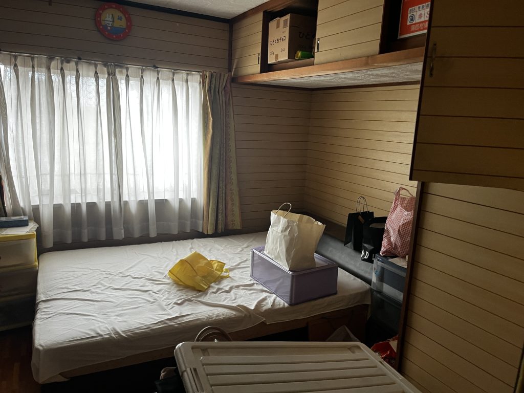 * ビフォー: 収納スペースには物が溢れ、寝室にはベッドフレームやテーブルが残っていました