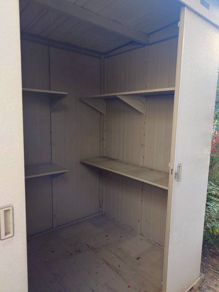 今回のご依頼いただいたのは、お庭にあるスチール製の物置です。
