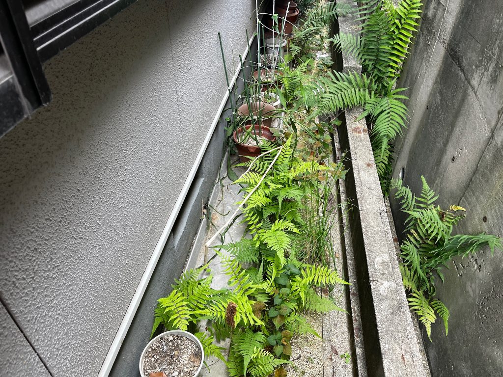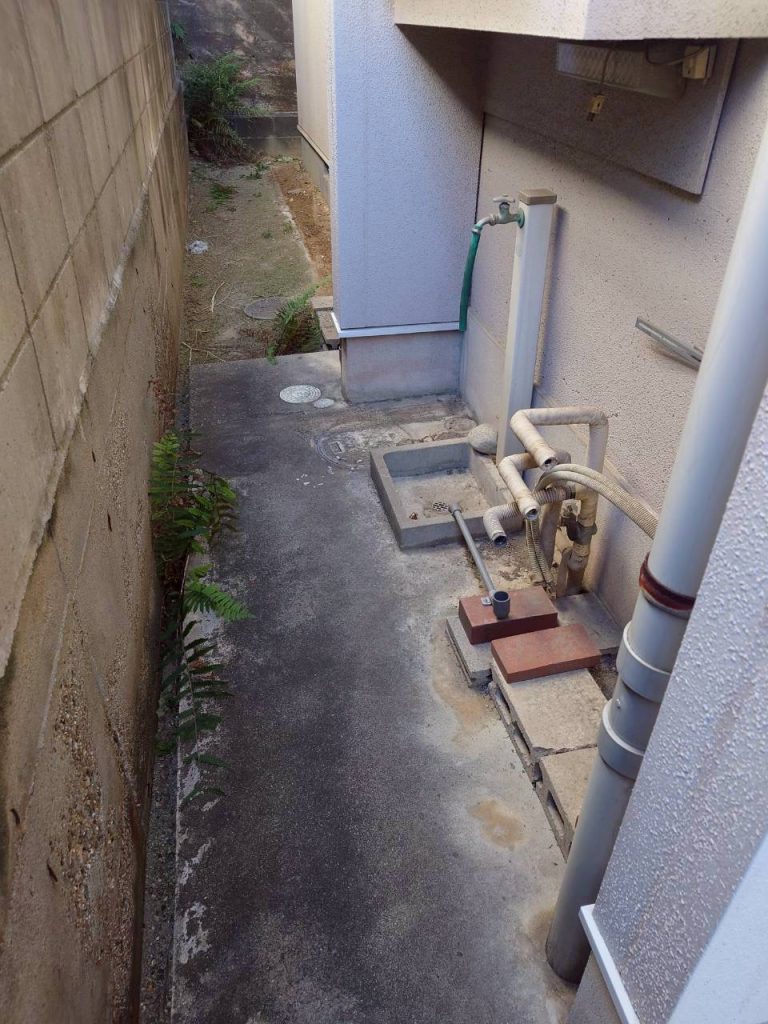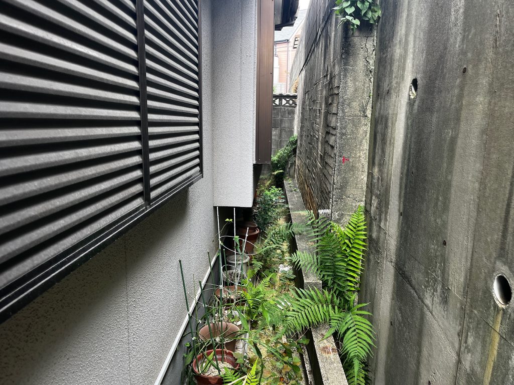 今回の現場は、物置からトラックまでの搬出経路が非常に狭い「犬走り」を通る必要がありました。