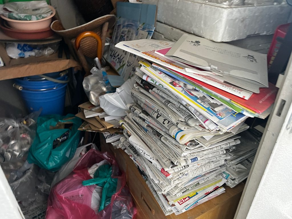 - 大量の古新聞・チラシ(湿気を含んで重い状態)
