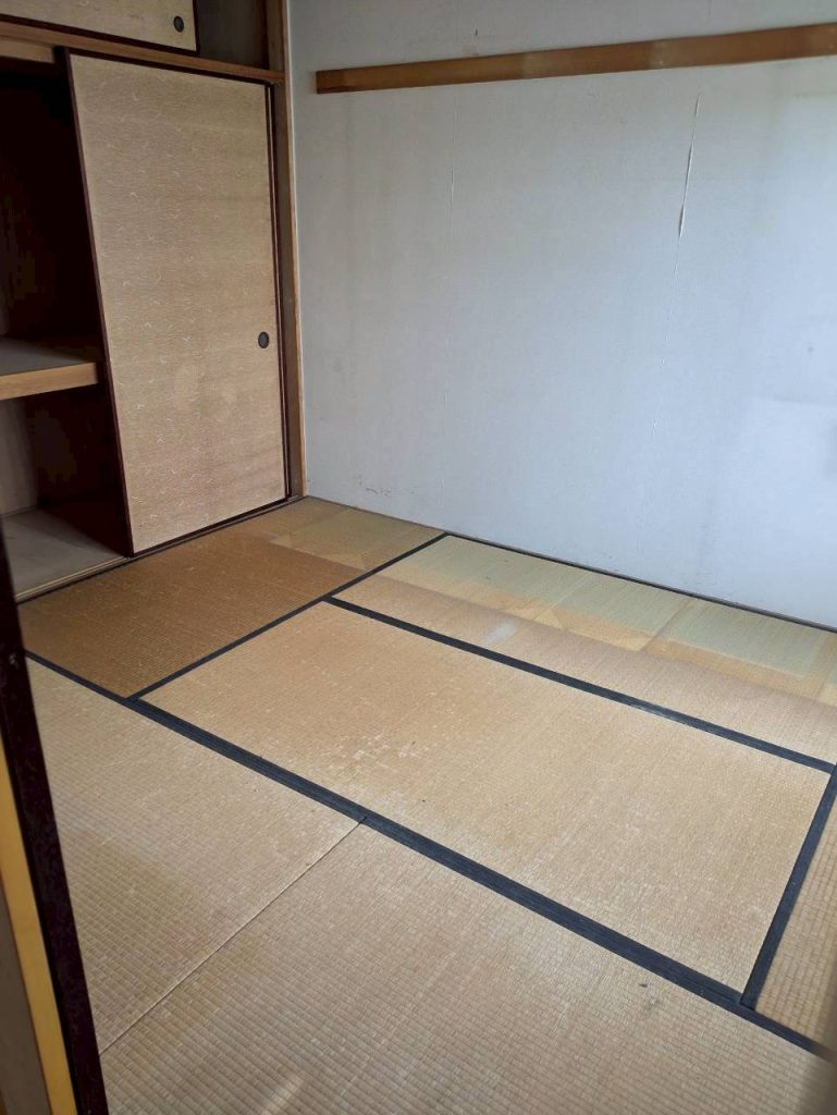 - 【物が多すぎる】 和室(畳の部屋)のタンス、押し入れに保管されていた布団や衣類、さらに古い洗濯機や浴槽のフタなどの処理に困っていた。